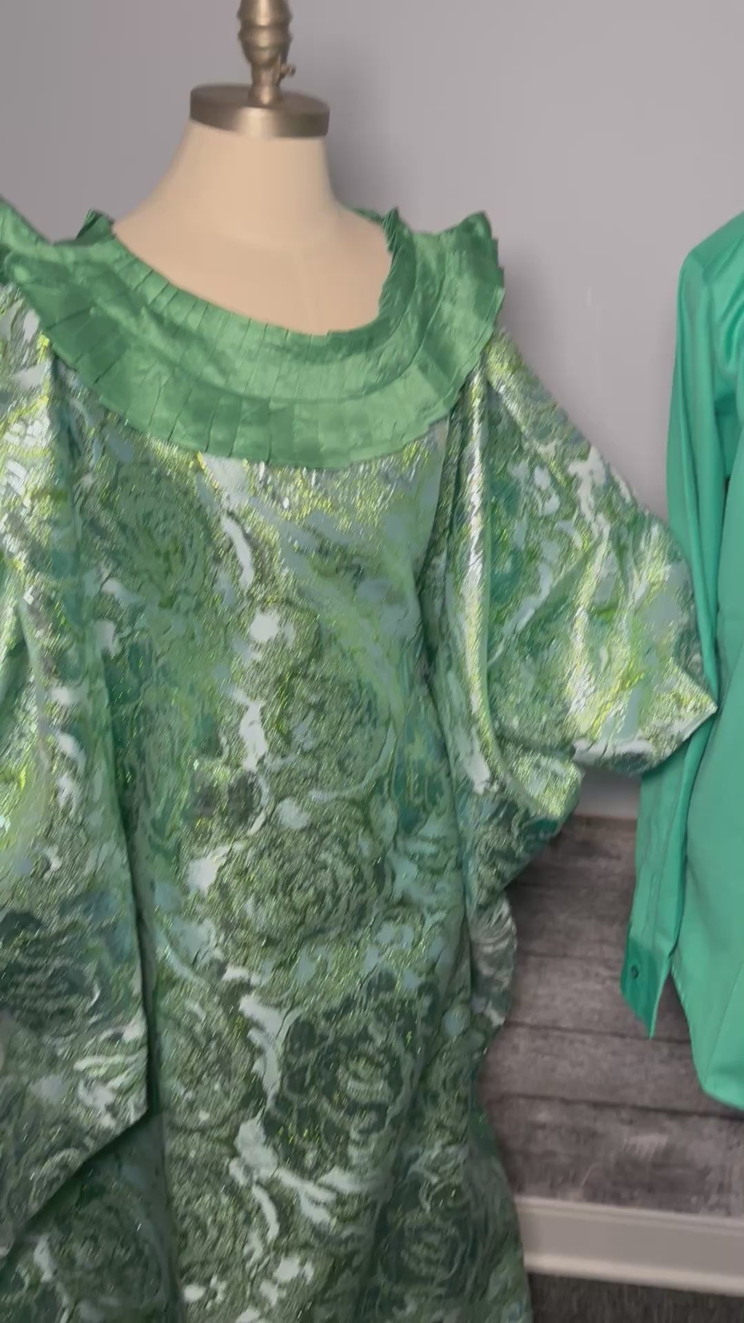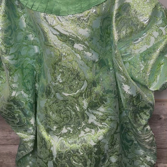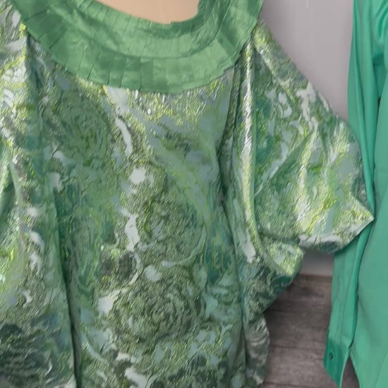 3-Piece Women's Boubou Set – Boubou + Inner Skirt + Scarf | Luxury Brocade Lemah | Floral Green