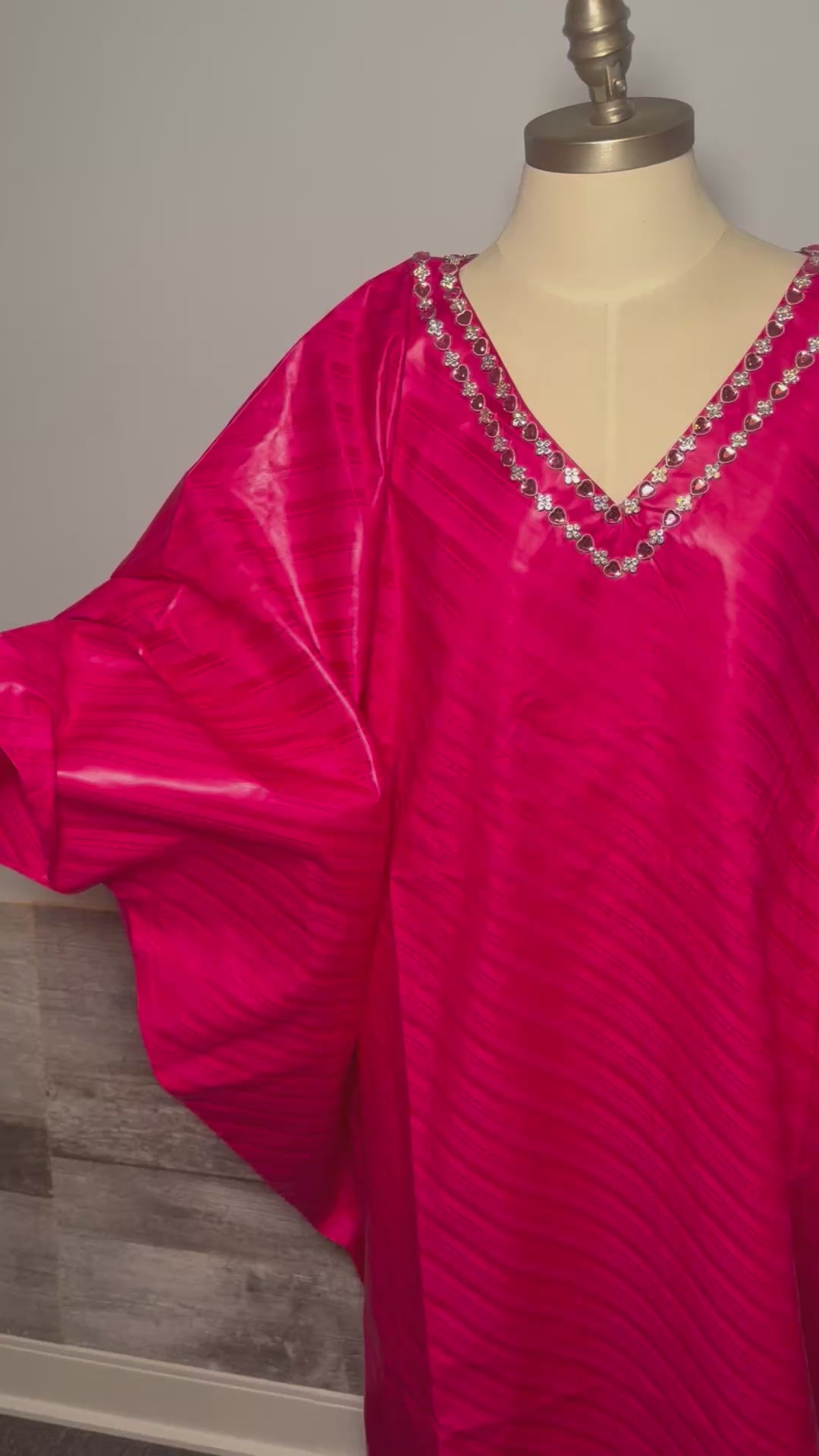 Boubou en Bazin Luxe – 3 pieces | Foulard + Jupe intérieure| Tissu Premium & Coupe Élegante | Fuschia | Lemah Collection