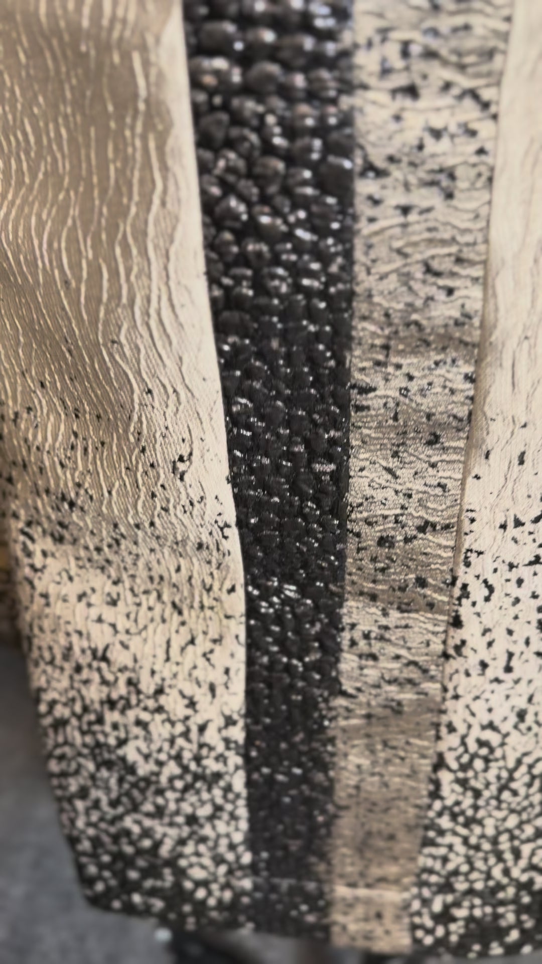 Couleurs : Noir profond et gris perle aux reflets soyeux