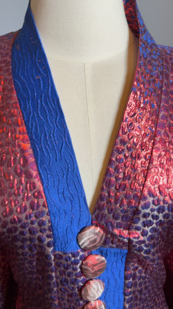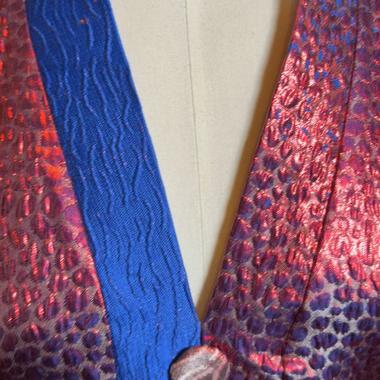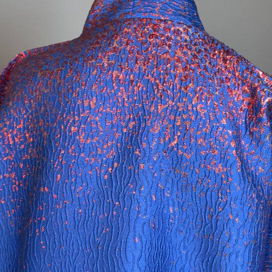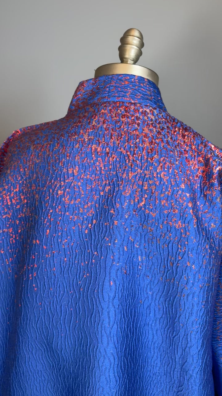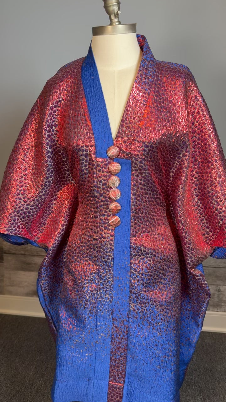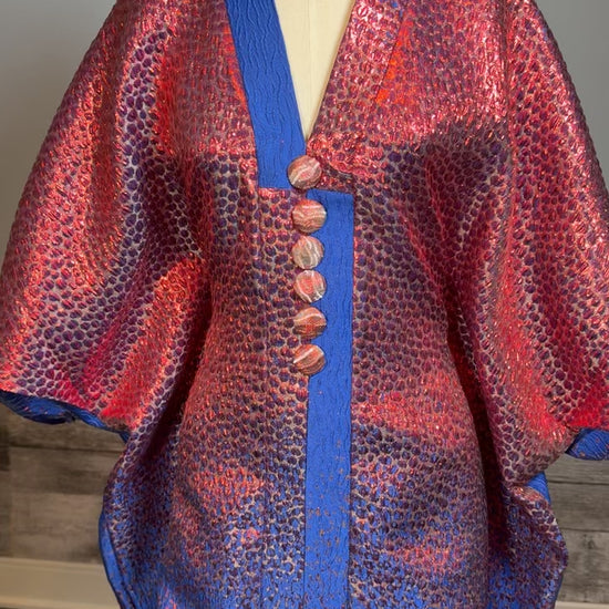 Plongez dans une élégance vibrante avec ce boubou court en brocade bleu royal et rouge intense. Cette pièce maîtresse allie avec audace le raffinement des tissus traditionnels et l’énergie des couleurs royales africaines. Une tenue puissante, pensée pour celles qui osent se démarquer avec grâce.