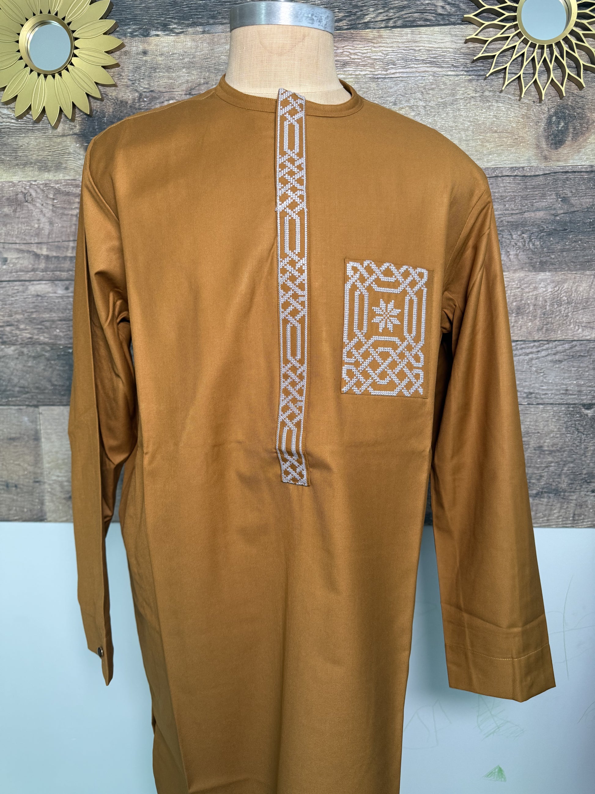 Cet ensemble pour homme, composé d’une chemise droite et d’un pantalon assorti, allie sophistication contemporaine et héritage africain. Confectionné dans un tissu noble et structuré, il offre un tombé impeccable et une allure affirmée. Un choix idéal pour l’homme qui souhaite incarner l’élégance, le respect de ses racines et un style soigné.