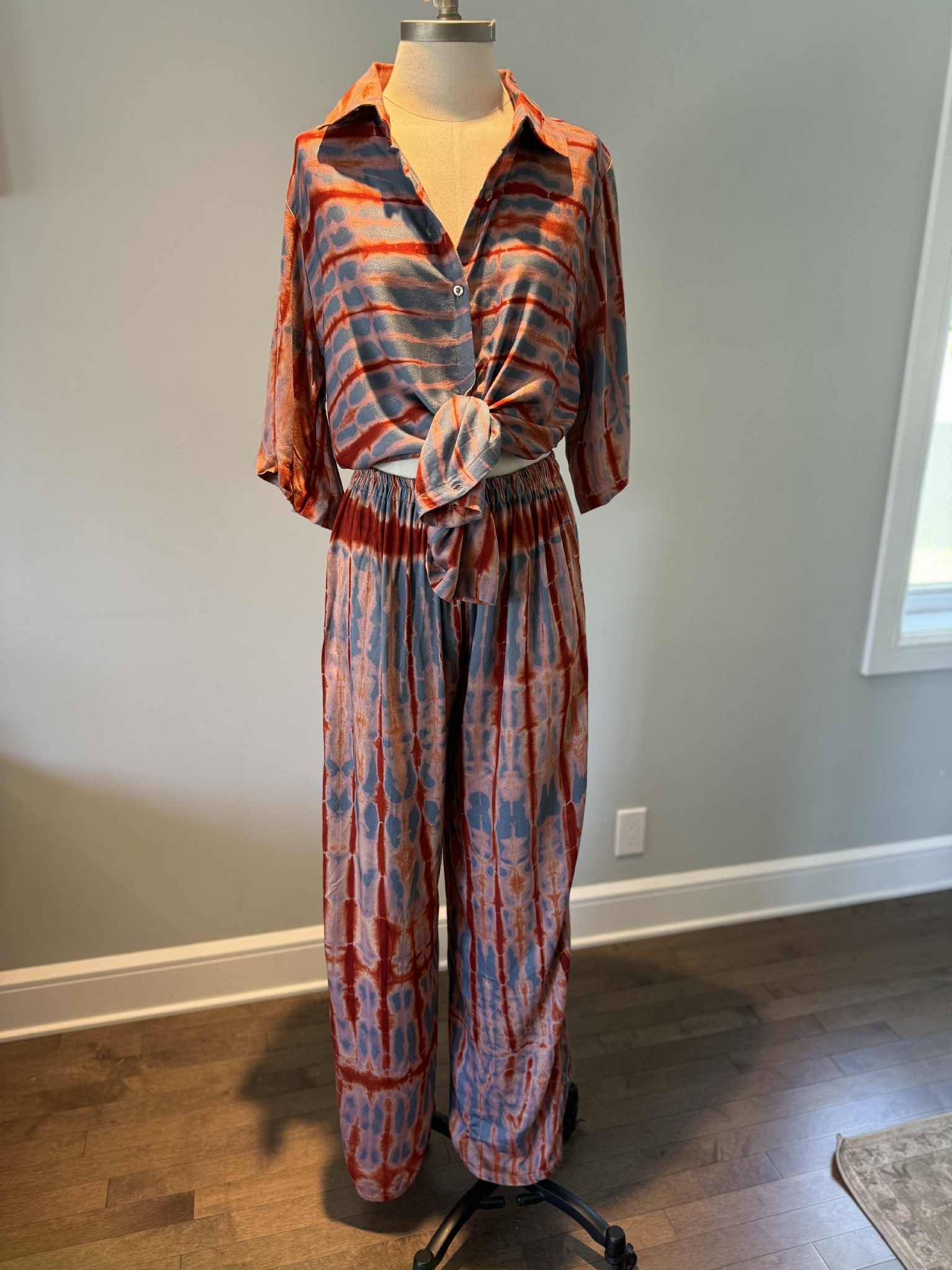 KIT- Chemise courte manche et Pantalon Cuivre et Gris rosé