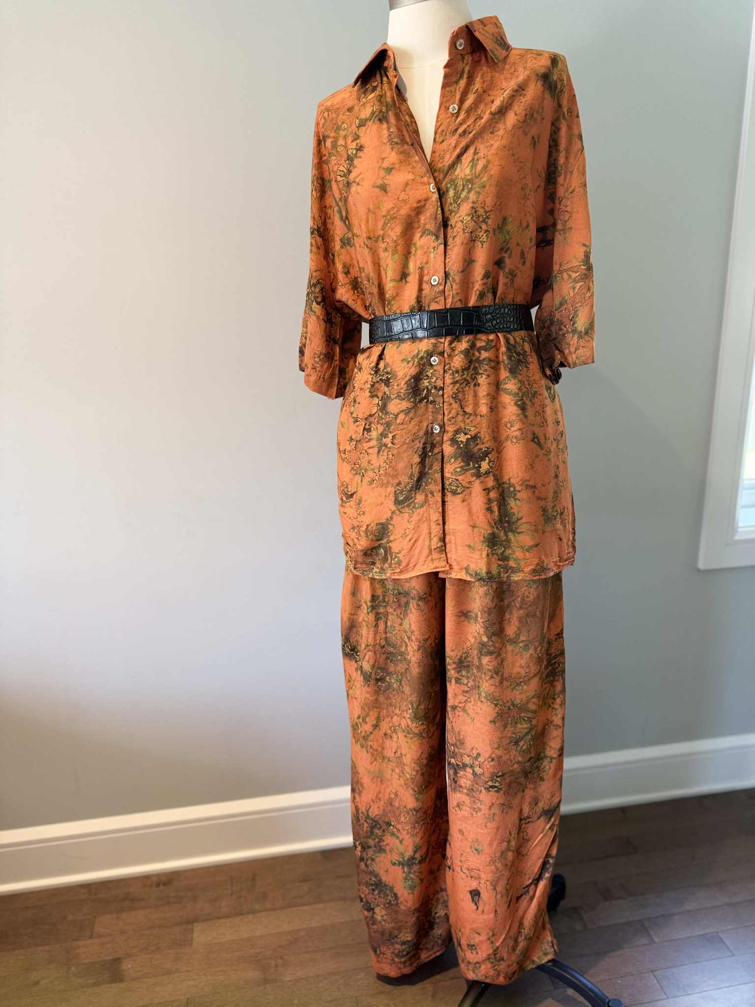 KIT - Chemise courte manche & Pantalon Orange Cuivré - Brun vert