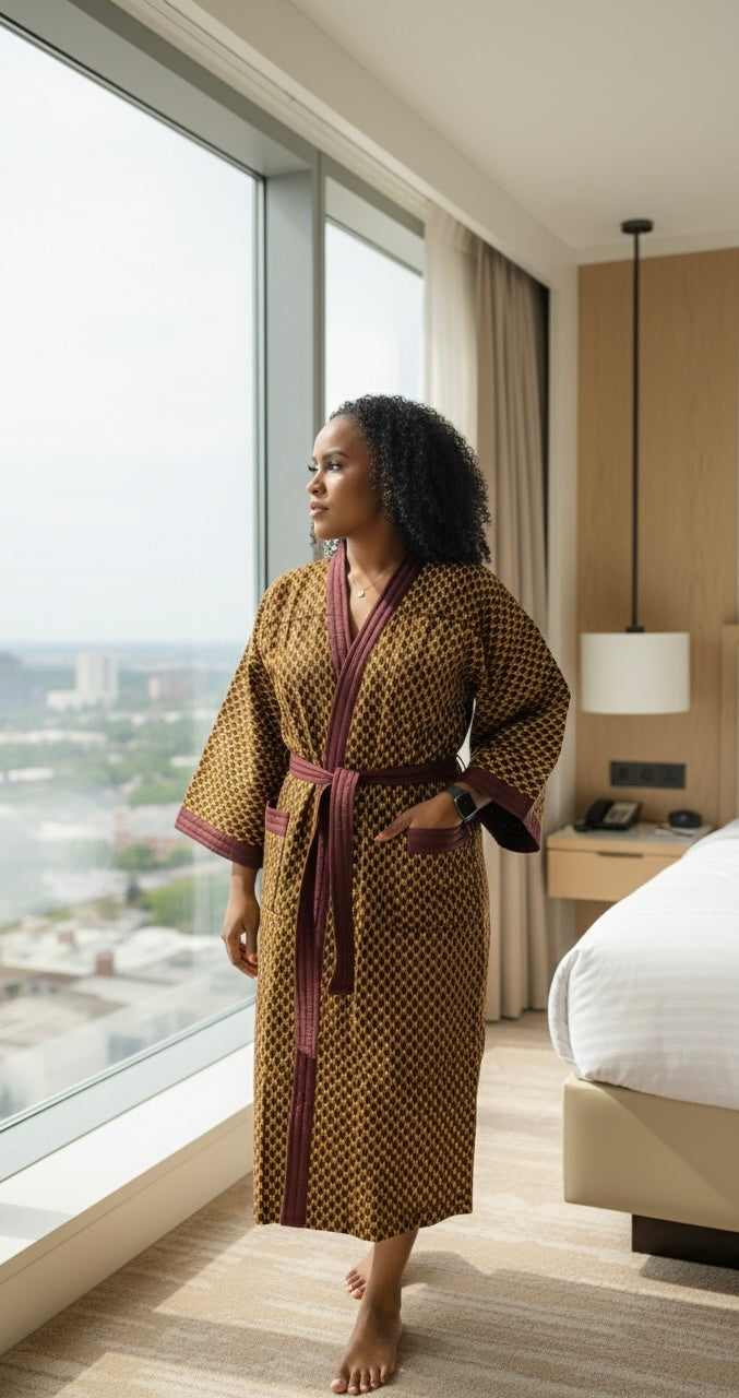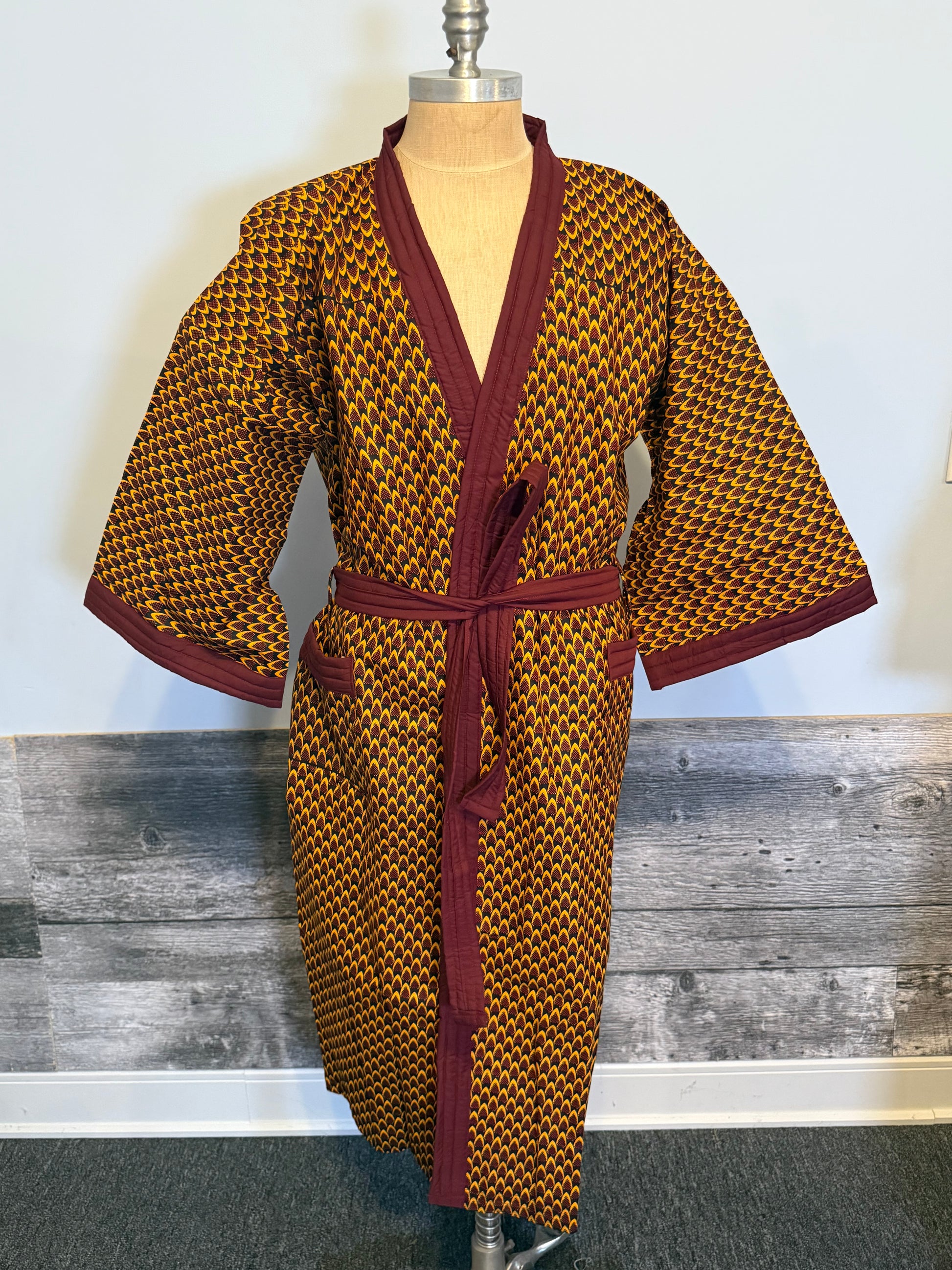 Peignoir & Pantoufles - jaune & Bourdeau- mixte - Lemah Canada