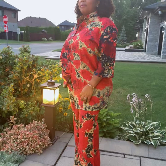 XL - XXL - Chemise & Pantalon - Rouge Floral