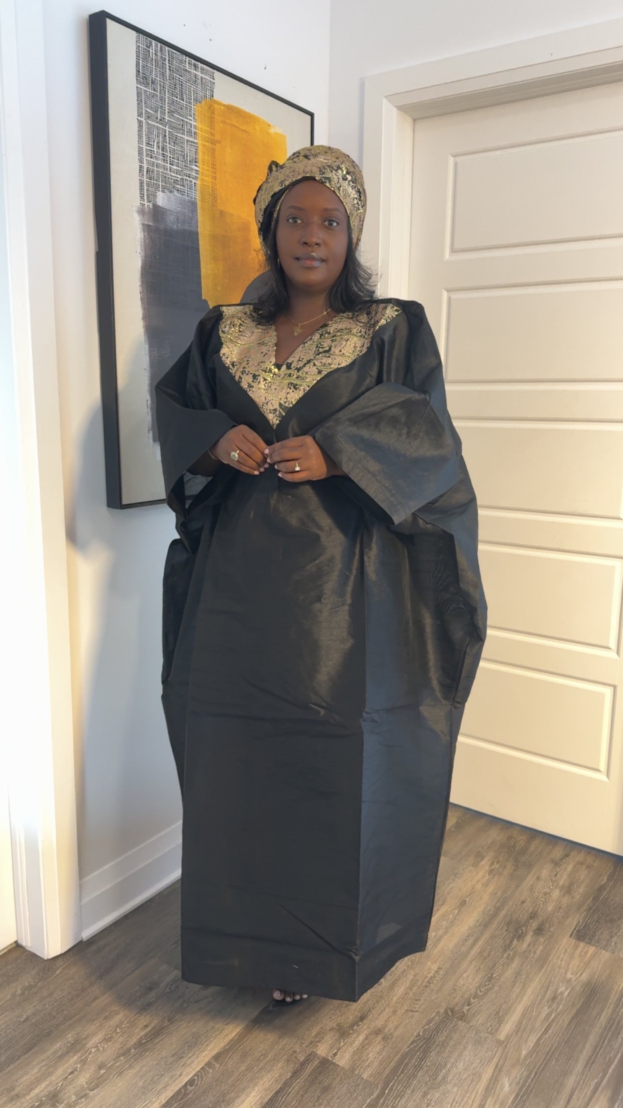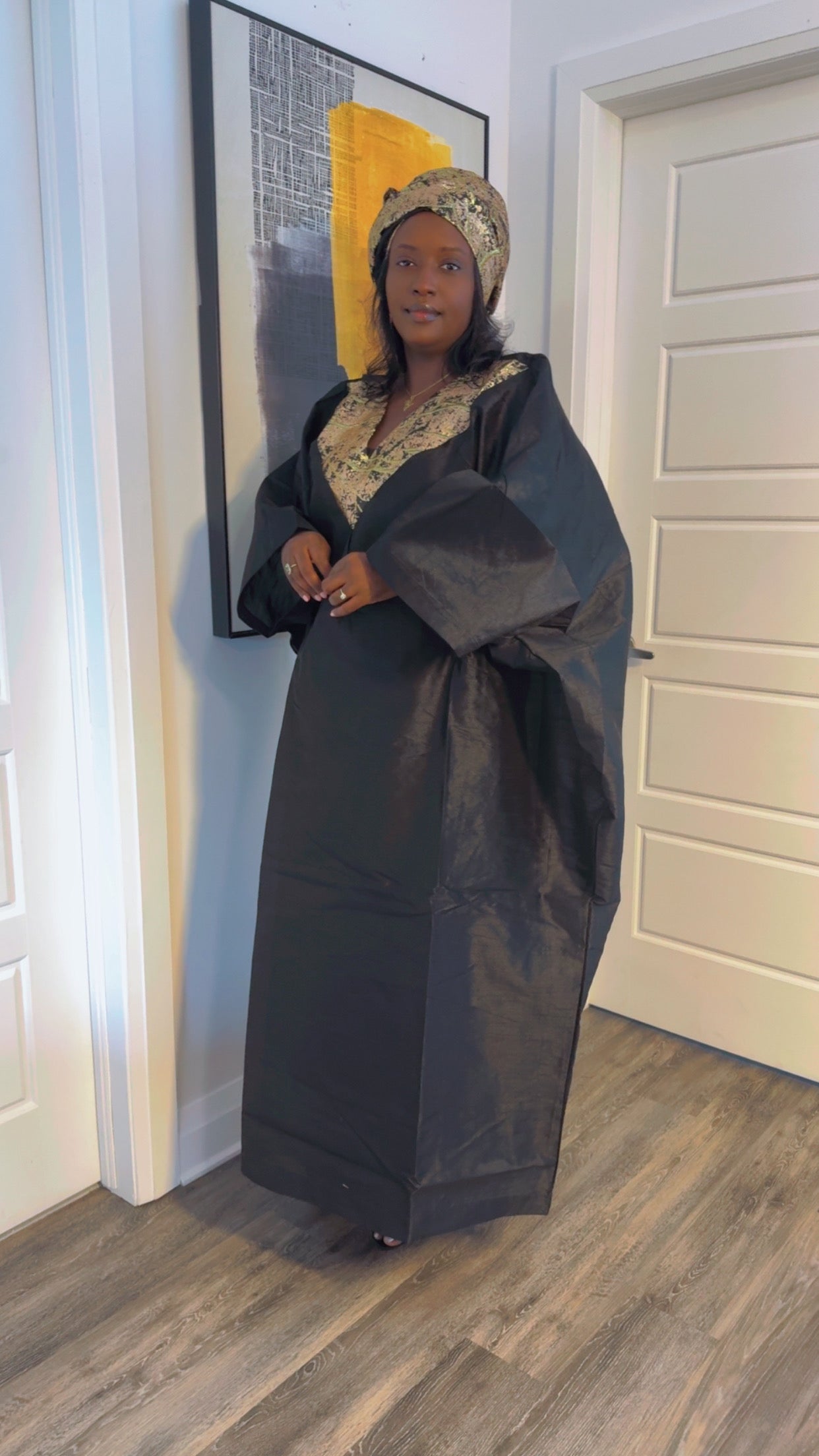 Sobre et élégant, ce boubou noir est un symbole d’allure intemporelle. Sa teinte profonde et son tombé fluide en font une pièce chic, facile à accessoiriser et parfaite pour toutes les occasions. Un classique revisité pour sublimer la silhouette avec élégance.